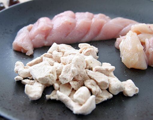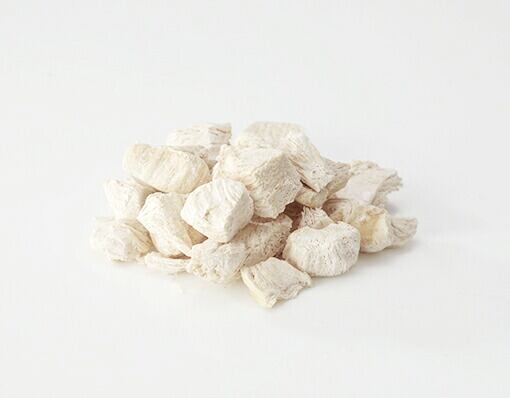 旨みを逃さないよう、ボイルではなく 表面に熱を通すスチームで下処理し、フリーズドライ加工でフワフワ食感に仕上げました。