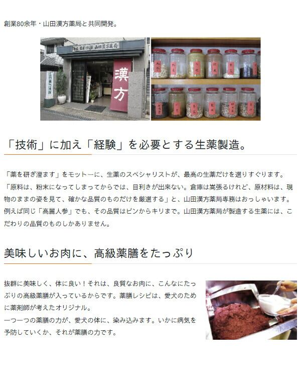 商品名は「馬肉・鹿肉に五種の薬膳を配合した」という意味を込め、パッケージは漢方薬をイメージした赤、紫、金を基調に、体が循環し流れていくイメージをデザインしています。カロリーカロリー:328kcal/100g中原産国日本