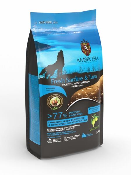 AMBROSIA アンブロジア HMNサーディン&ツナ 1.5kg ドッグフード 総合栄養食 グレインフリー