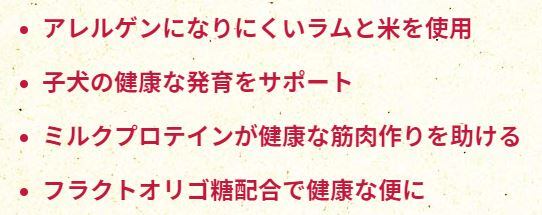 ラム肉と米を主原料にして食物アレルギーに配慮しています。保証成分粗タンパク質:27.0%以上