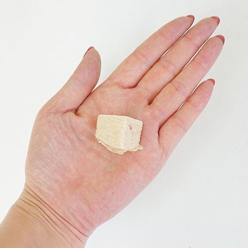 栄養そのままで、お湯で戻すと生肉をボイルしたような香りと食感が楽しめます。 おやつやフードのトッピング、手作りご飯の具材としてお勧めです。