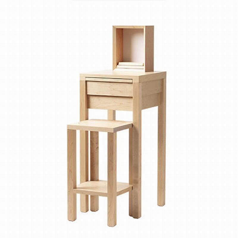 花台は天板の上に花瓶を置いても厨子を置いても、綺麗に飾ることができます。前面には膳引と引き出し二杯がミニマルに収納されています。