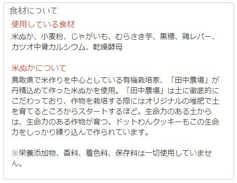 おやつや普段のごはんへのトッピングに原材料米ぬか、小麦粉、じゃがいも、むらさき芋、黒糖、鶏レバー、カツオ中骨カルシウム、乾燥酵母