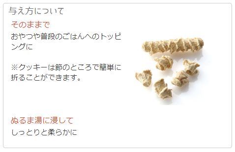 原材料乾燥おから(神泉村の豆腐)、脱脂粉乳(よつば乳業)、食用牛骨カルシウム、ビーフエキス、かつお節(焼津産)、カツオエキス(焼津産)※牛由来はいずれも全頭検査済み国産牛。