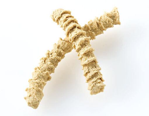 チーズの香りと、カリッとした歯ごたえが楽しめる、少し「固め」のおやつです。成分表粗たん白質…30.0%以上