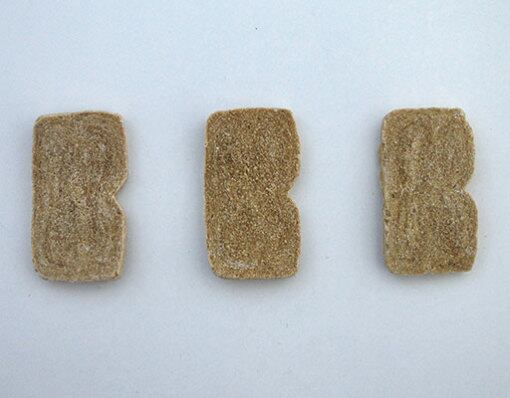 薄型で与えやすい、しっかり噛める「固さ」のおやつです。成分表粗たん白質…5.0%以上