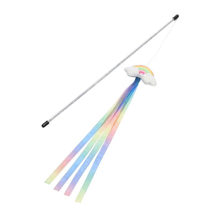 かわいいマスコットからのびるカラフルなフリンジと銀色のスティックが猫を魅了します♪