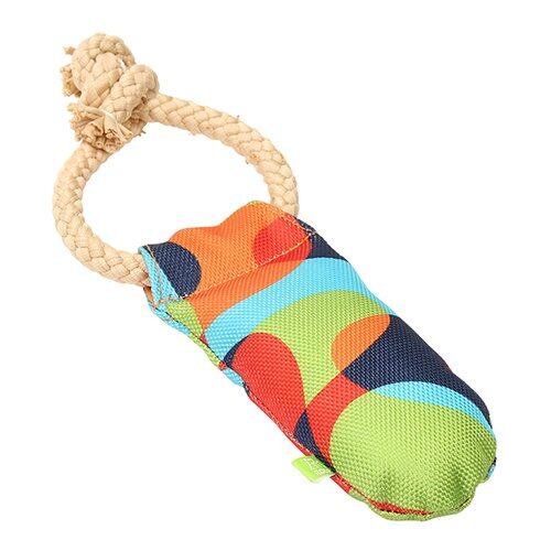 高密度に織られた丈夫なナイロン生地とTシャツロープが組み合わさった、ユニークなドッグトイ★