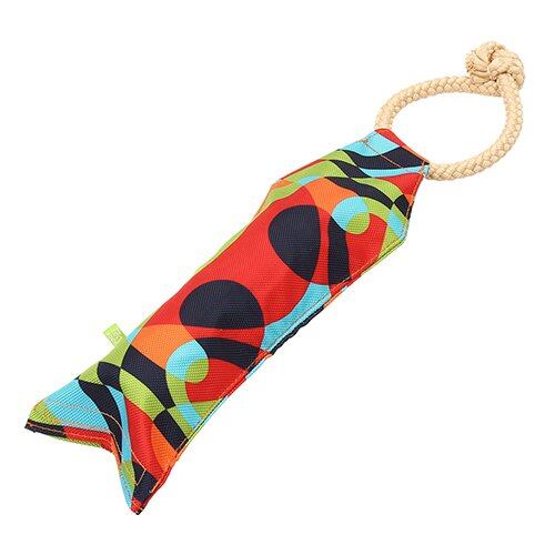 高密度に織られた丈夫なナイロン生地とTシャツロープが組み合わさった、ユニークなドッグトイ★