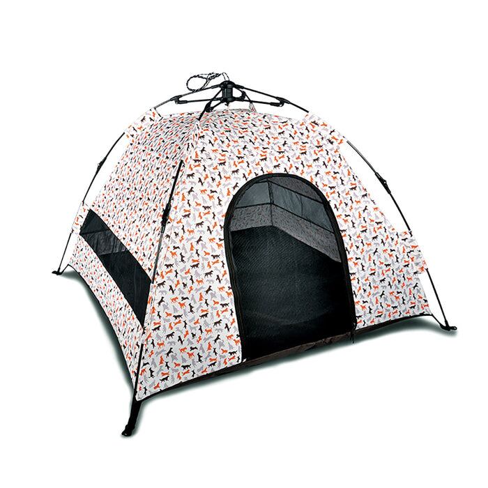 アウトドア派に嬉しい折り畳み式で設置も片付けも簡単なテント。大型犬でもゆったり入れるビッグサイズです。