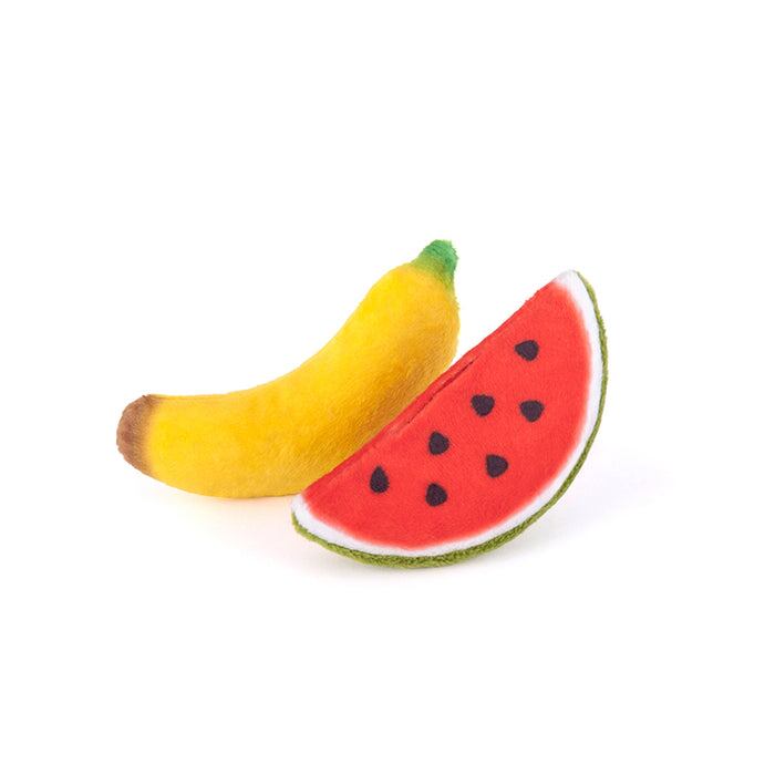 バナナとスイカを模したおもちゃが2個1セットになっています。猫ちゃんが大好きなキャットニップと、カシャカシャ音がする素材を使っていますので、飽きずに遊ばせることができます。