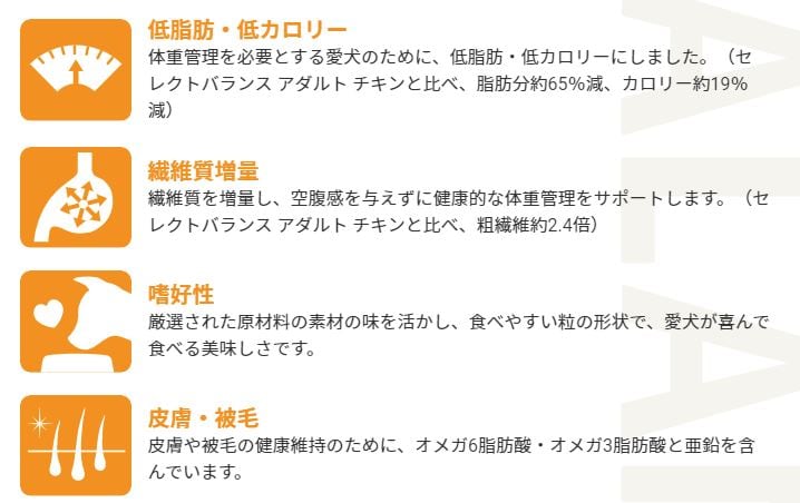 セレクトバランス ライトは、生後1才以上の肥満・運動不足の成犬におすすめの総合栄養食です。