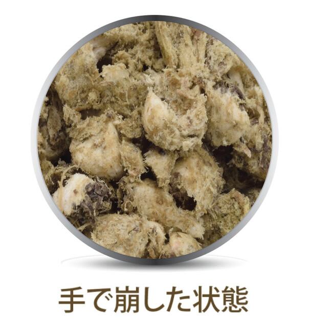 フードにトッピングして、3倍量の水(37℃以下)を加えて与えてください。 そのまま、おやつとして、また、崩してふりかけとして、与えることもできます。