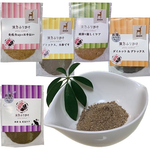 漢方ふりかけとは?「漢方ふりかけ」は、ピリカメディカルサロンが開発したワンちゃんネコちゃん用のふりかけです。