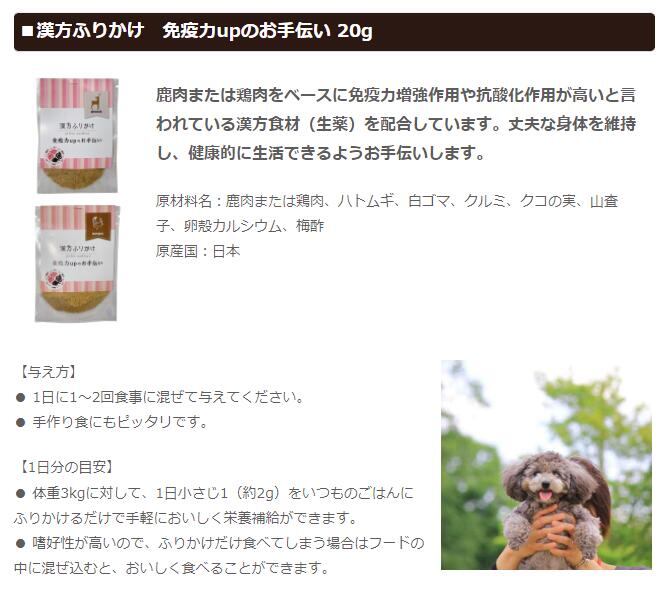 漢方ふりかけ 免疫サポート(鶏) 20g (犬用 猫用 ペットフード ドッグフード キャットフード おやつ 添加物不使用 着色料不使用 保存料不使用 低脂肪 高タンパク ふりかけ)