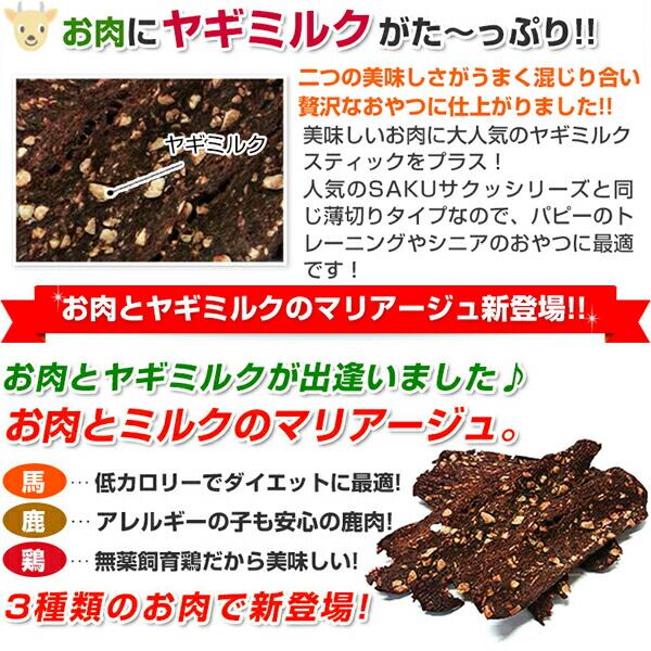 原材料名 無薬飼育鶏肉(長崎県産)、タラ(北海道産)、鶏肉(国産)、澱粉、小麦粉、ヤギミルク粉末、おから、マッシュポテト、チーズ、クマ笹粉末内容量 30g