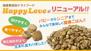 こだわりの国産・無添加ドライフード「HappyLove」人と同じ原材料だけでつくられた安心安全なドライフードです!