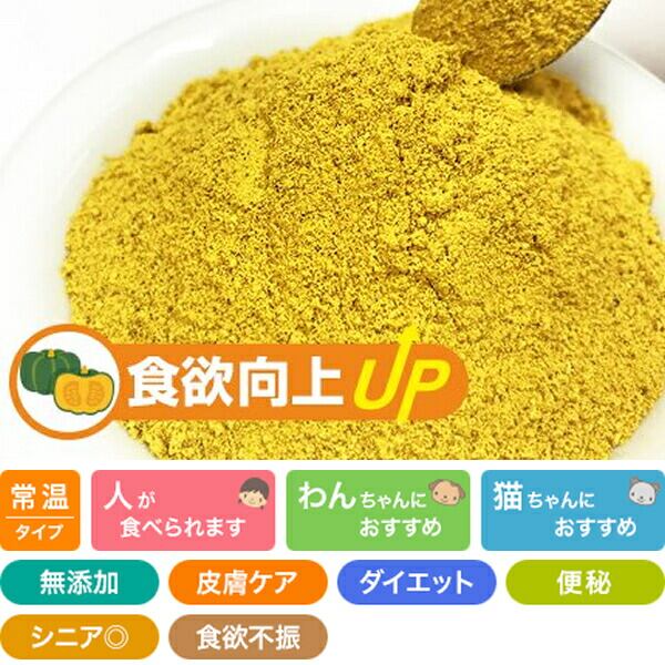 かぼちゃの旨味と美味しい香りが口の中に広がります!パウダータイプなので消化しやすく、食欲がない子やシニアにもおススメ!