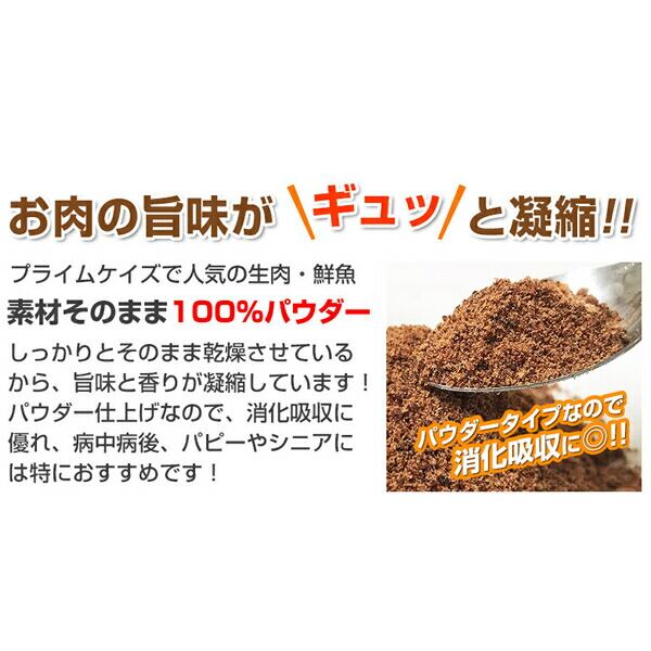 パウダータイプなので消化しやすく、食欲がない子やシニアにもおススメ!
