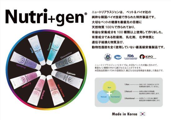 ニュートリプラスジェンは、ペッツ&バイオ社の純粋な韓国バイオ技術で作られた特許製品です。