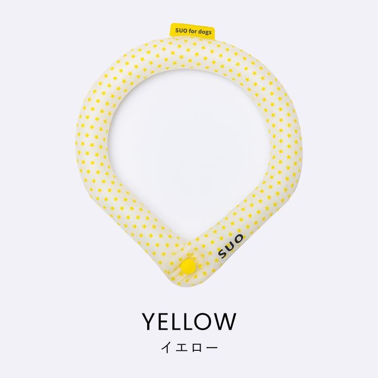 SUO for dogs 28°ボタン付きアイスクールリング 【M-b イエロー星柄】 犬用 ネッククーラー 暑さ対策 熱中症対策 クールリング 冷却 散歩 首掛け ひんやり 冷感 涼感