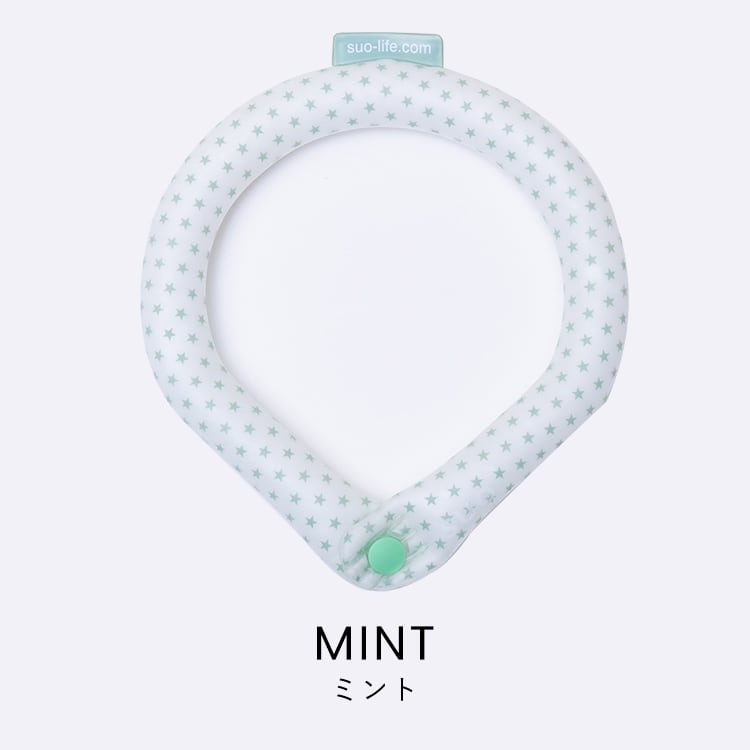 SUO for dogs 28°ボタン付きアイスクールリング 【SS-b ミント星柄】 犬用 ネッククーラー 暑さ対策 熱中症対策 クールリング 冷却 散歩 首掛け ひんやり 冷感 涼感