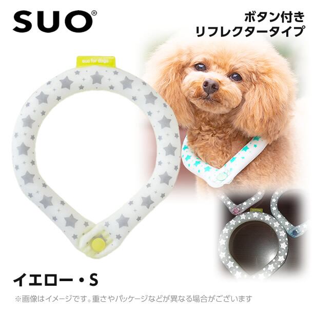 2023 SUO 28°アイスクールリング ボタン付き SB イエロー(リフレクター) (ネッククーラー 犬用 ひんやりグッズ 冷感アイテム)