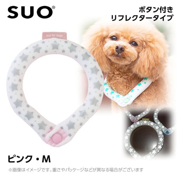 2023 SUO 28°アイスクールリング ボタン付き MB ピンク(リフレクター) (ネッククーラー 犬用 ひんやりグッズ 冷感アイテム)