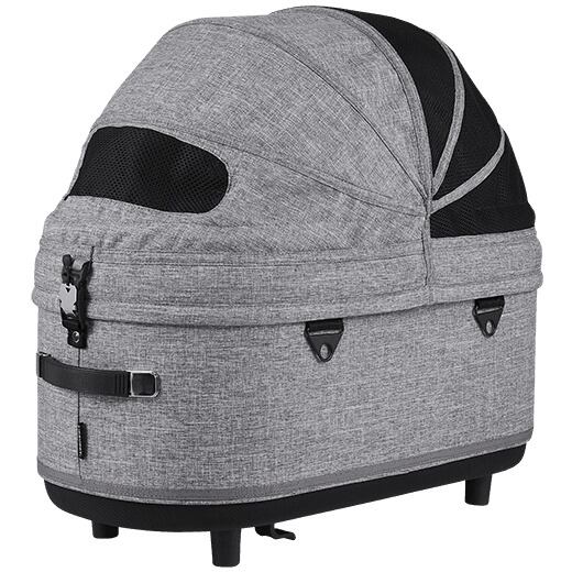 新しくなったDOME3は、室内空間が約20%アップ。内部空間にゆとりが生まれ、多頭飼いや、より大きな犬種でも快適にお使いいただけるようになりました。コットは180度開くオープンエアルーフを採用。左右どちらからでもワンタッチで開閉できます。持ち運びは、両手のハンドルで安全に。エアバギーならではの快適な走り心地はそのままに、出入りしやすく、よりスマートに生まれ変わりました。