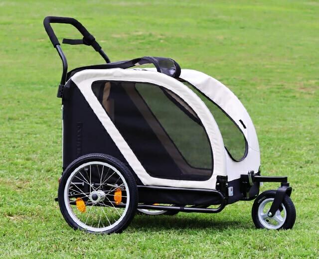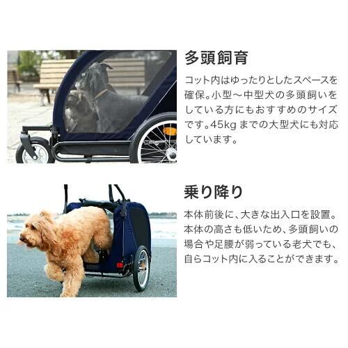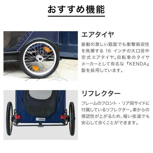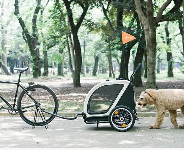大型犬から中型犬の多頭飼いに人気のNESTから、自転車牽引型トレーラーとしても使用できるバージョンアップモデルが登場。 NESTの基本スペックはそのままに、前輪フロントフォーク素材を強化。大型犬を乗せた自転車牽引も安心です。本体サイドには、キャリーのワンポイントになるエアバギーオリジナルのバイクモード用フラッグを取り付け可能。 フラッグをなびかせながら、「自転車 + キャリー」の新しいお散歩スタイルをお楽しみください。